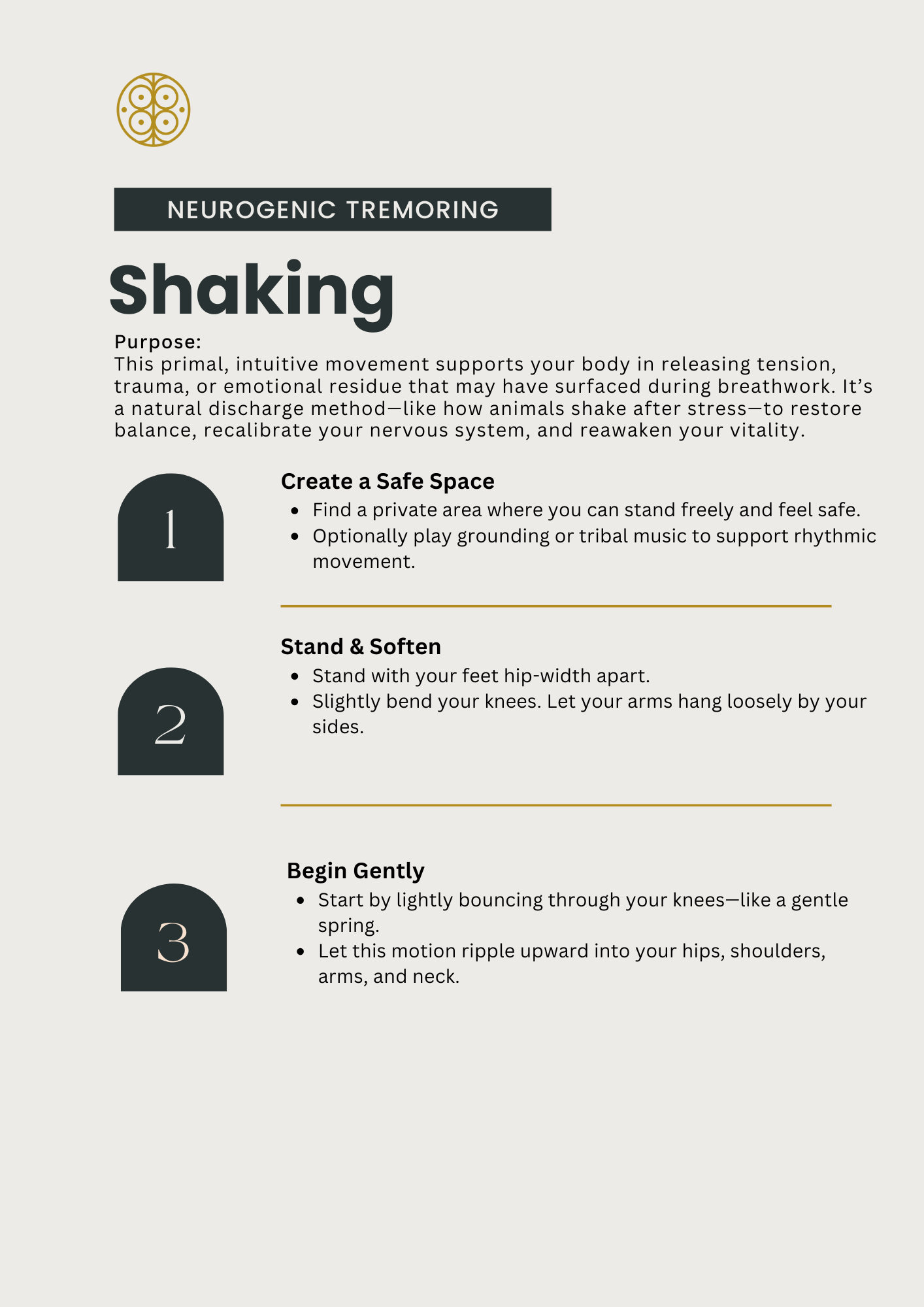 This primal, intuitive movement supports your body in releasing tension, trauma, or emotional residue that may have surfaced during breathwork.
